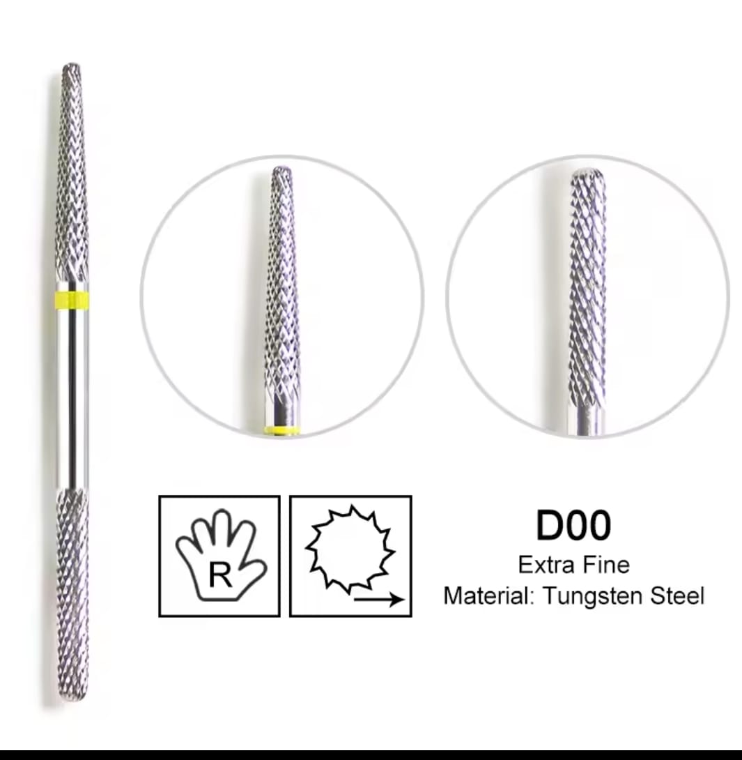 Broca Carboneto Tungestenio tres tamanhos, fino, medio, e abrassivo.